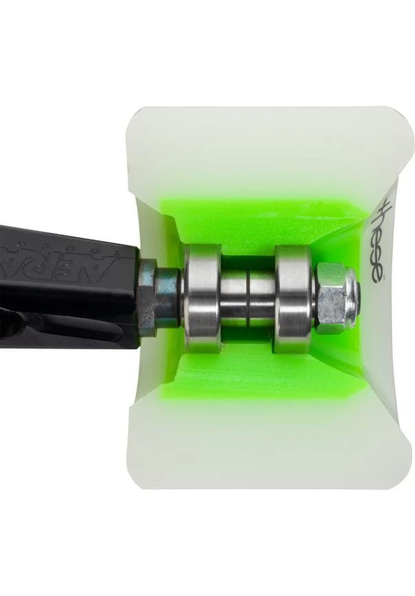 Der präzisionsgeschliffene verlängerte Laufring macht Speedrings überflüssig und sorgt für eine bessere Ausrichtung der Lager, wenn die Achsmutter angezogen wird. Eine Rille an der Innenseite jedes Lagerinnenrings eliminiert Gewicht und ermöglicht das Einsetzen und Entfernen des Lagers mit dem Bones Bearing Tool, selbst bei Rädern mit Hubs.
