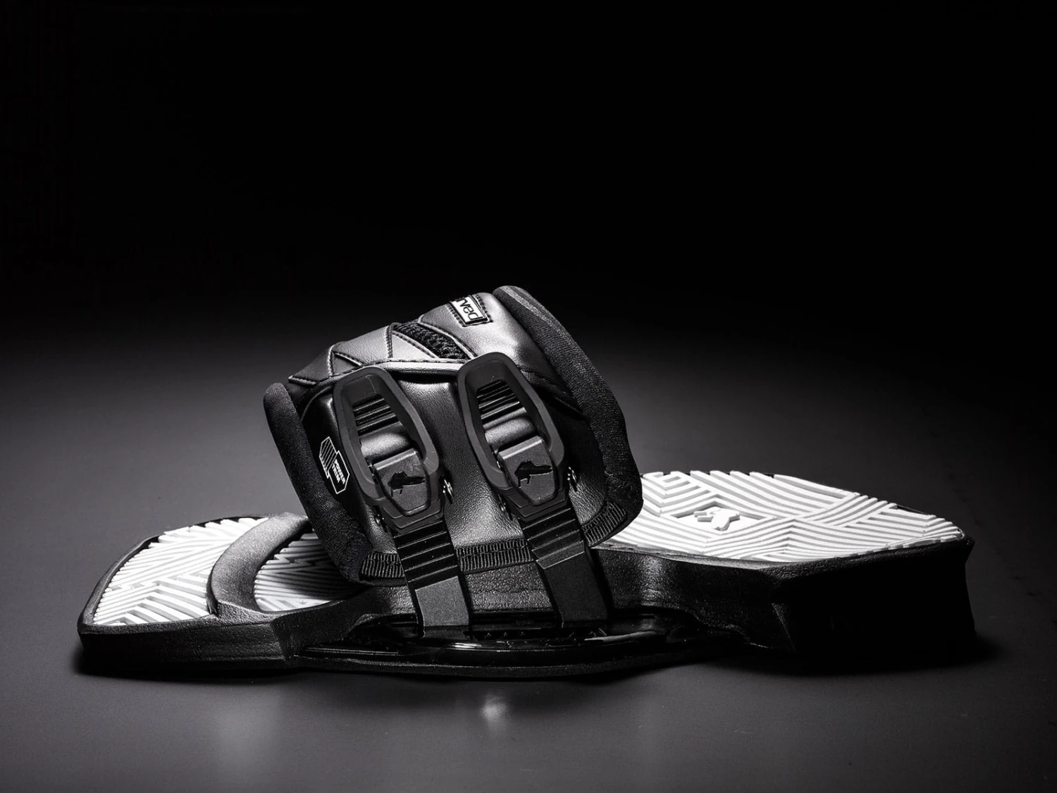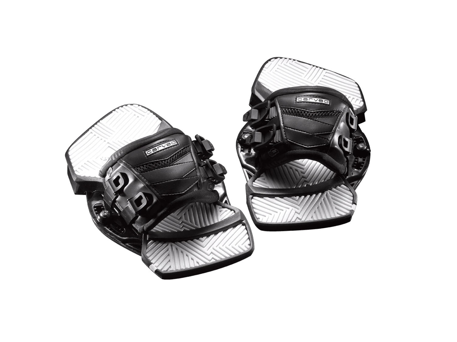 Mit dem Ultra Pads & Straps System führt Carved Customs eine Schlüsseltechnologie aus dem Snowboarden auch ins Kiteboarden ein. Dank des neuen „Power Trim“-Mechanismus lassen sich die Straps mit nur einem Fingertipp sowohl öffnen als auch perfekt schließen und einstellen – mühelos sogar während der Fahrt. Der zweiachsige Ratschenverschluss bietet in Kombination mit der bequemen Memory-Foam-Konstruktion bombenfesten Halt und perfekten Stand, fast auf dem Niveau von Boots. Bei der Variabilität zeigt sich die Carved Customs Ultra Bindung nahezu grenzenlos: Die Baseplate lässt eine große Bandbreite an Stance-Winkeln zu und ist nicht nur in der X-Achse (Boardlänge) verstellbar, sondern bietet auch in der Y-Achse (Boardbreite) verschiedene Positionen. Genauso variabel zeigt sich die Voreinstellung der Straps. Dank schraubenloser Strap Lock Wings mit vielstufigen Ankerpunkten im Pad lassen sie sich nicht nur in der Weite, sondern im Verhältnis zum Pad sowohl in der X- als auch in der Y-Achse verstellen. Auf diese Weise kann ausnahmslos jede Schuhgröße im optimalen Schwerpunkt von Board und Pad positioniert werden. Für höchsten Komfort sorgt derweil die superweiche Innenseite aus Neopren, die im Inneren einen EVA-Kern sowie Memory-Foam ummantelt. Außen schützt ein robustes Finish aus wasserverträglichem Kunstleder.
