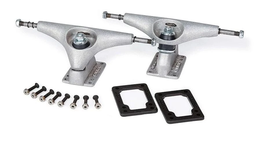 Die CX-Achse ist der Hybrid-Surf- und Skate-Truck von Carver. Einerseits handelt es sich um eine leichte Standard RKP (Reverse King Pin) Aufhängung und Basis, andererseits hat die CX Version eine patentierte Geometrie, die jedes bisschen Drehung und Pumpen aus dem System drückt. Das bedeutet, dass Du diesen Truck wie einen C7 pumpen kannst, er landet aber auch Airs und fährt Fakie mit mehr Stabilität. Dies ermöglicht mehr Manöver, höhere Geschwindigkeiten und entspricht den neuesten Entwicklungen im Surfbereich.