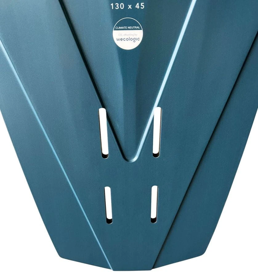 Sein innovatives Design zeichnet sich durch eine V-förmige Verstärkung über das gesamte Board aus, die für eine unübertroffene Steifigkeit sorgt. Der Holzkern ist CNC-gefräst und mit Carbonfasern kombiniert, um das direkte Feedback zum Foil zu verbessern. Die Konstruktionstechnologie bietet nicht nur maximale Haltbarkeit und Langlebigkeit, sondern ermöglicht auch einen fairen Verkaufspreis. Das Full Deckpad ist mit einem Tailkick ausgestattet, der für maximalen Grip beim Strapless-Fahren sorgt. Das Board bietet aber auch verschiedene Strap-Positionen für bis zu drei Straps.