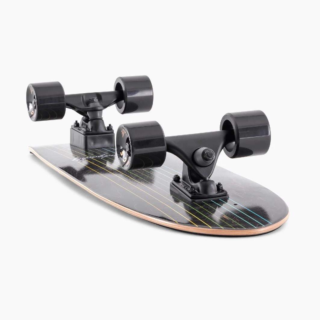 Das Landyachtz Butter ist ein 31,2″ breiter Surfskate Shape mit einer leichten Schräge in Richtung Nose und Tail. Die 7-lagige Ahorn-Konstruktion sorgt für ein angenehmes Fahrverhalten, während die weiche Konkave und das Kicktail Ihre Füße für jedes Hindernis, das Sie als Nächstes anfahren wollen, fest im Griff haben. Das Butter kommt mit unserer neuen Banger Surfskate Achsenkombination, bestehend aus einem Banger RKP Fronttruck für maximalen Turn und Response gepaart mit einem Polar Bear 155 Heck für ein stabiles, berechenbares Fahrverhalten. Abgerundet wird das Setup mit einem Satz 63mm 78a Fatty Hawgs mit glänzender Oberfläche für die glatte, griffige Fahrt, die Sie brauchen.