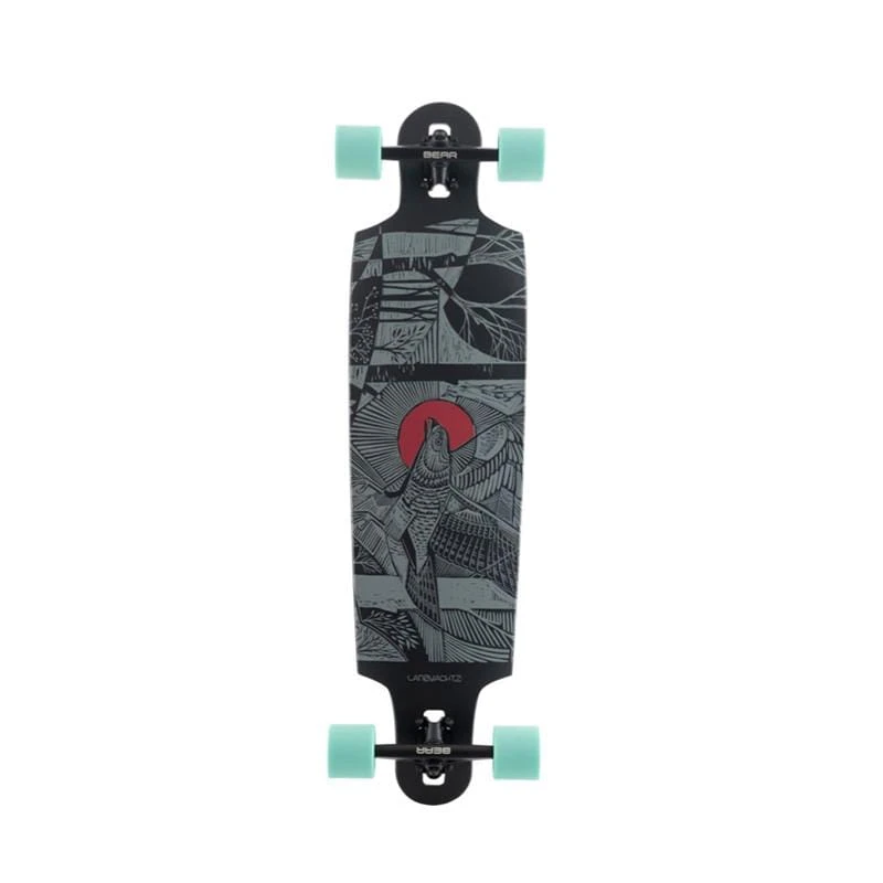 Das Landyachtz Drop Cat ist ein kompaktes, direktionales Drop-Through-Longboard, das 38″ lang und 9,9″ breit ist. Der Shape wurde für 2020 leicht modifiziert, um perfekt mit den neuen Gen 6 Grizzly Trucks zu arbeiten. Die 7-Lagen-Konstruktion in einem so kleinen Board führt zu einer winzigen Menge an dämpfendem Flex, der Ihre Fahrt auf allen raueren Straßen glättet, während es immer noch steif genug ist, um etwas Geschwindigkeit und Rutschen zu bewältigen. Dieses Board hat auch eine gesunde Dosis Rocker und eine aggressive Konkave, damit Ihre Füße beim Freeriden bequem und an ihrem Platz bleiben. Das Drop Cat kommt mit unserem Flaggschiff 50 Grad 180mm Grizzly Gen 6 Trucks ideal für tiefe Carves und selbstbewusstes Cruisen sowie einige große 72mm 78a Plow King Räder für eine glatte, schnelle und super griffige Fahrt ausgestattet.