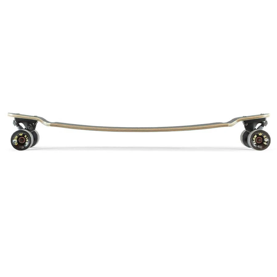 Das Deck besteht aus kanadischem Ahornholz, sodass es besonders leicht ist und dir dennoch die gewünschte Steife und Langlebigkeit gibt. Der Shape wurde mit einem konisch zulaufenden Tail konzipiert, um dir ein grandiose Dynamik liefern zu können. Abgerundet werden diese Eigenschaften mit einem Rocker-Profil und einem Drop-Flat, deine Füße stehen daher zu jeder Zeit sicher und komfortabel auf deinem Board. Du hast einen festen Stand und erlebst dadurch ein besonders sicheres Gefühl in jedem Moment.