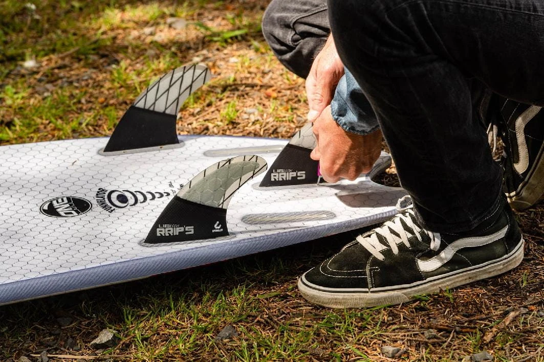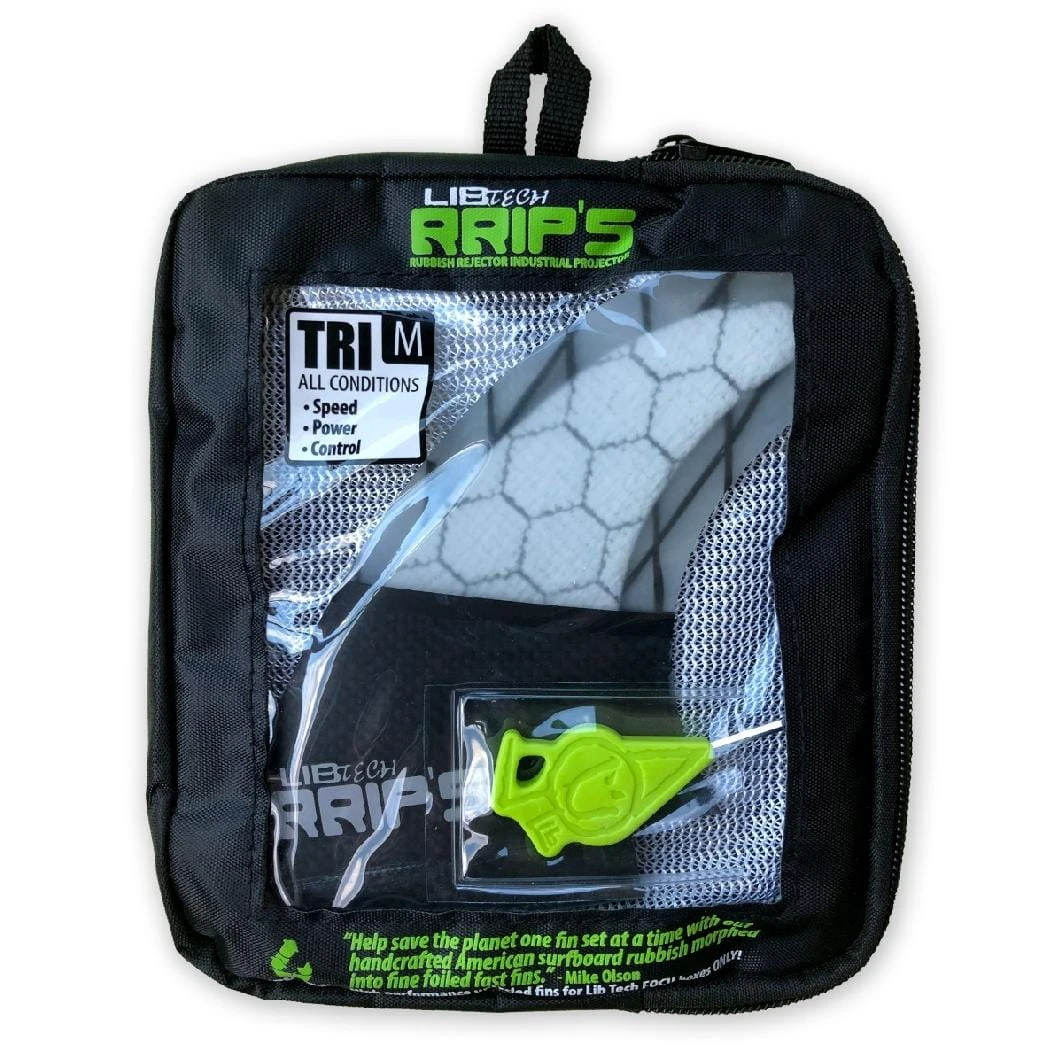 Da jedes Surfbrett der Welt im Grunde eine ovale Form hat, die aus rechteckigen Grundmaterialien geschnitten wurde, spart man bei Lib Tech die ungenutzten Ecken der Surfboard-Rohlinge auf und macht daraus die Finnen. Die Lib RRIP-Finnensätze haben einen leichten Hexzylon Fiberfoam-Kern, eine verstärkte biaxiale Carbonfaser-Basis und gespannte Carbonfaser-Torsionsstäbe an den Spitzen für ein lebendiges Rückstoßverhalten.