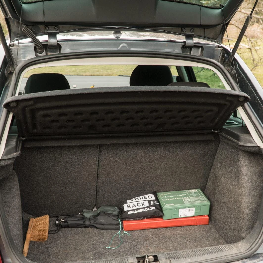 ShredRack selbst verkraftet pro Modul bis zu 120 kg (also insgesamt 240 kg). Allerdings sollte unbedingt auf die zugelassene Dachlast des jeweiligen Autos geachtet werden! Moderne Autos haben meist ein dünnes Dach, weshalb das ShredRack bevorzugt an den Rändern bzw. an den verstärkten Trägern und Säulen angebracht werden sollte
