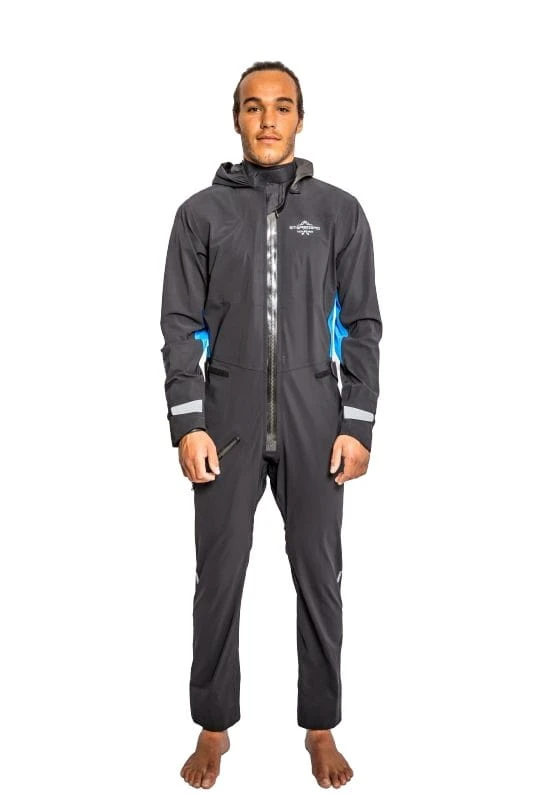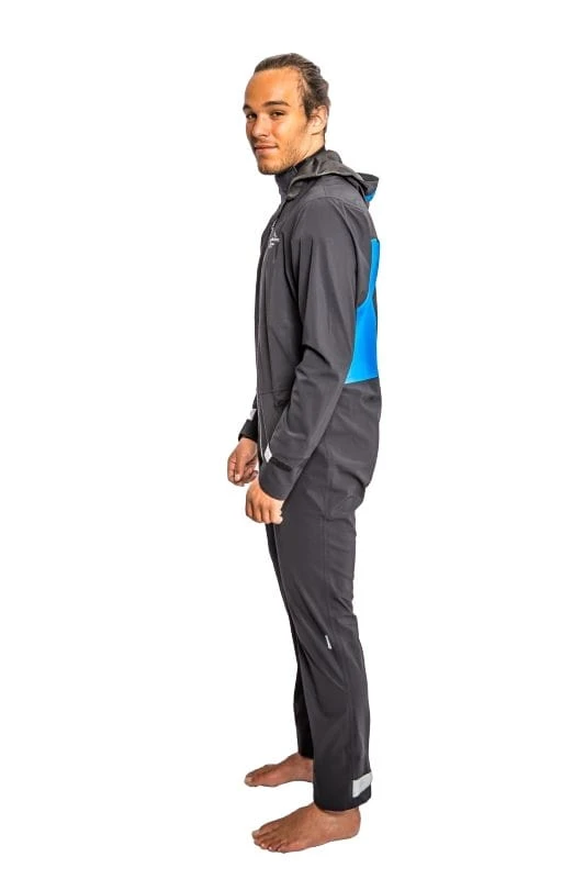 Das dreilagige Material, kombiniert mit dem wasserdichten Frontreißverschluss und mit Latex Manschetten an Armen und Beinen schützen auch bei kalten Temperaturen vor Wasser und Wind.