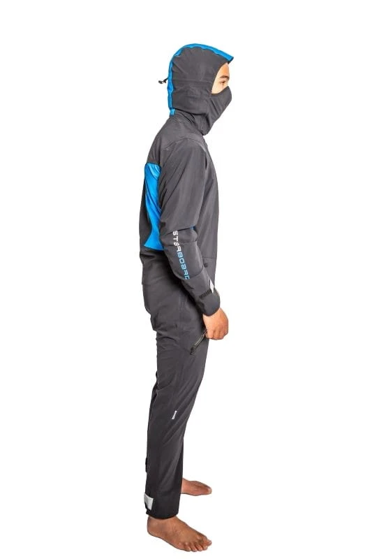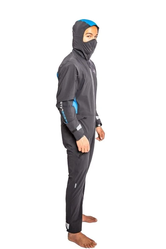 Unter den Trockenanzügen auf dem Markt sticht er auch optisch hervor: Das für Starboard maßgeschneiderte und besonders dehnfähige Material erlaubt einen körperbetonten Schnitt in Damen- und Herrenpassformen.